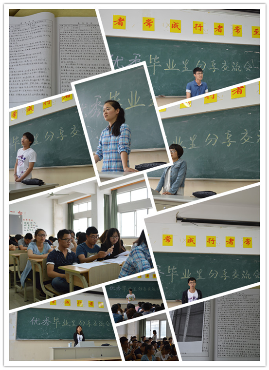 值此2015届毕业生返校之际,5月29日下午,建工学院学工办邀请2012级所有优秀毕业生欢聚在教学楼B310教室,特别邀请魏秀芹、杜蕊瑞、踪方方等优秀毕业生代表为大一、大二的在校生作一次朋辈分享。