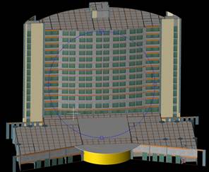 在对BIM为主标志的建筑行业信息化发展趋势充分认识的基础上,建工学院近一年之内,组建了BIM课程教师团队,进行BIM课程开发和BIM综合实训室的建设等。在建工学院郑惠虹院长亲自指导下成立了“BIM建模工作室”,下图为“BIM建模工作室”学生成员利用业余时间创建的“学院图文信息中心大楼”三维数字模型。自2015年秋季学期起,建筑工程专业群所有专业将开设BIM建模课程。