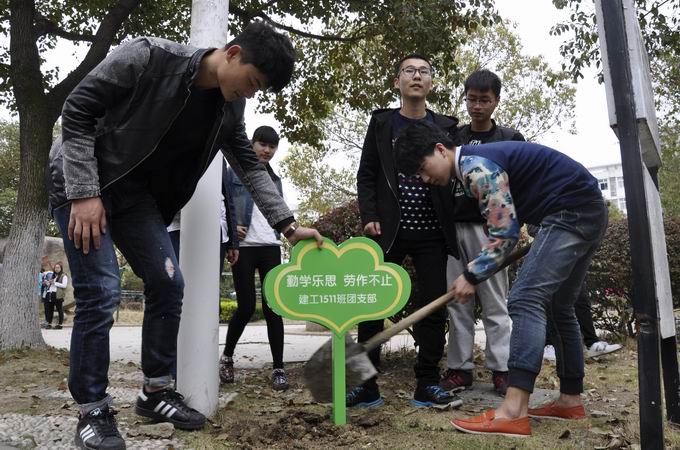 “衣沾不足惜,但使园尽美。”最后,四位领导给各班团支部授牌,并带领同学们开展现场劳作活动。(建工学院 程伟/文 陆凯(学生)/摄)