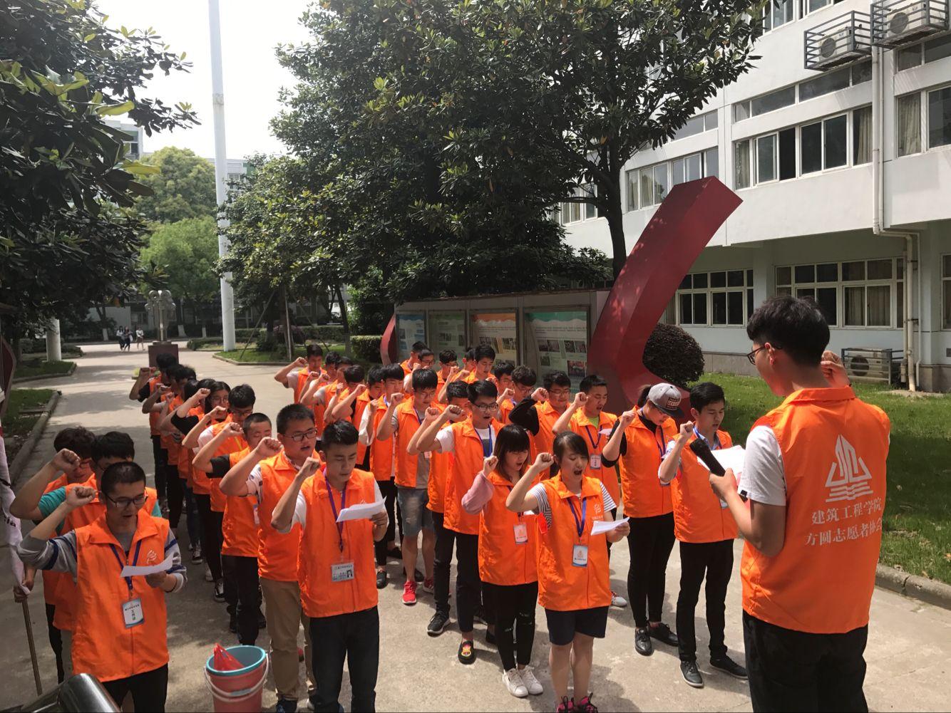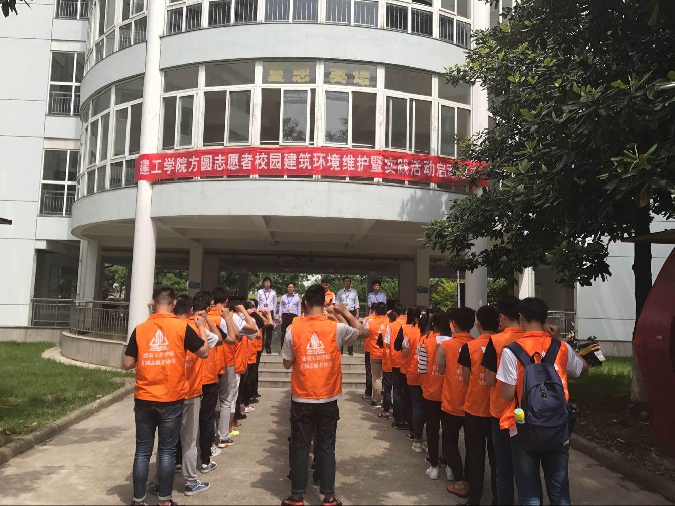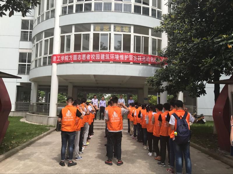 为进一步推动建工学院志愿服务活动的开展,提升大学生志愿服务意识,共同维护好美丽的校园坏境, 5月11日下午,在天工楼,建工学院举行了“方圆志愿者校园坏境维护暨实践活动”启动仪式。学工处副处长窦苏明、团委副书记孙津津、后勤服务中心副主任黄陈、建工学院书记张卫平、副书记程伟,全体方圆志愿者和入党积极分子参与了本次启动仪式。