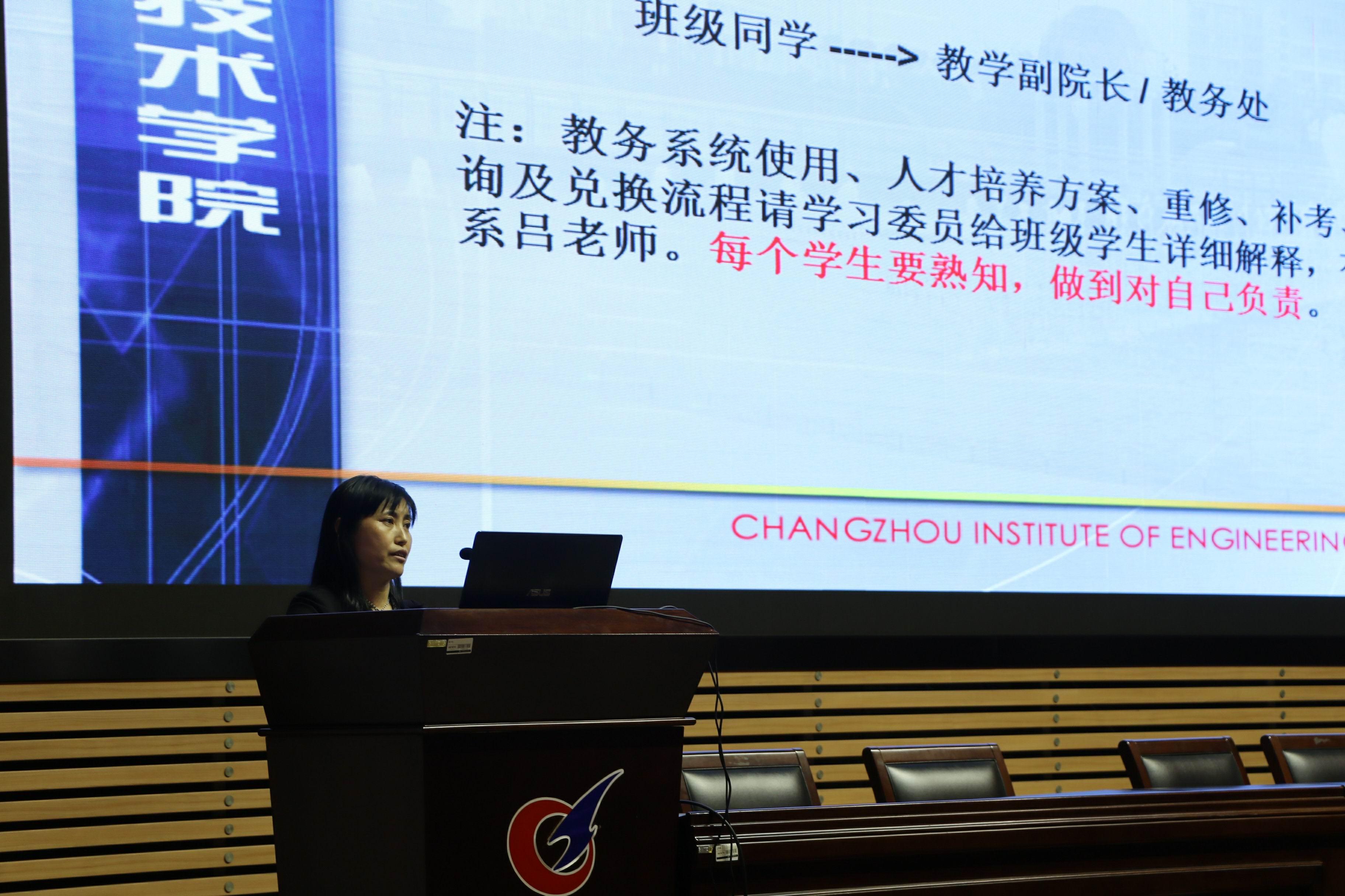 会议开始,程书记首先简短地介绍了会议议程和召开此次会议目的,并呼吁学生认真聆听和细细消化。随后,李月琴主任首先做了15级学生工作情况汇报,她以“正确审视自己,做好科学定位”为题,从在校学习、校园生活、校园活动、改变现状这四个方面进行介绍,提出每位学生要以毕业为前提,根据自身情况制定学习计划,打好基础养成正确的学习习惯,树立一种敢于担当、勇于负责的意识。接着,刘淑红主任围绕日常教学工作、职业资格考核及升学渠道等,详细地向在座的建工学生介绍了学院各项工作流程和工作要点,同时,对学生在考证和升学过程遇到的一些问题进行引导和教育,呼吁同学们擦亮眼睛,选择正规的渠道参与转本和考证;最后张卫平书记作了关于“人生规划”的讲座,他对学生的“个人规划、处事态度、丰富阅读”这三个方面提出了要求与期望,要求同学们主动思考,找准方向,做有益的事,张书记还强调要想成功,必须安于积累,同学们听了都若有所思。最后,程伟副书记进行了整个会议内容的总结,并对教育管理工作中存在的问题做了强调,希望大家加强专业学习,强化自律意识,配合班干部工作,充实的度过剩余的校园生活。本次大会在同学们的热烈掌声中落下帷幕。