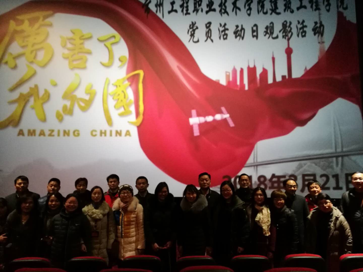 为进一步深入学习贯彻习近平新时代中国特色社会主义思想和党的十九大精神,建筑工程学院党总支于3月21日下午组织党员教师集体观看《厉害了,我的国》,集体为国家点赞。