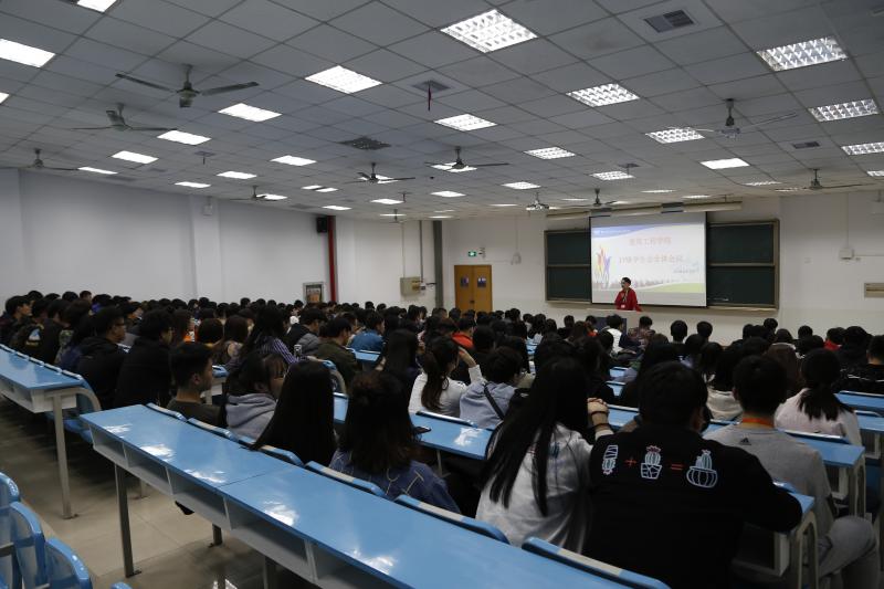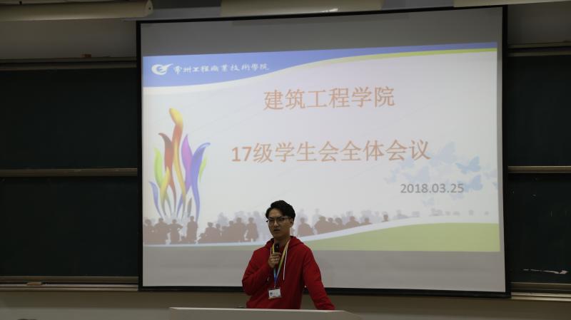 下午六点,建工学院2017级学生会全体会议在阶梯教室五准时召开。首先,学生会主席周益对学生会上学期的各项工作进行总结,并表达了对上半年工作的肯定,以及对学生会成员的希冀与鼓励。他强调,学生会举办的活动不能过于单一,要求学生会干事们积极创新,开展贴近学生校园生活的主题创新活动。然后,周主席提出了学生会中的一些干事违纪的事例,要求学生会成员要增强纪律观念,各部门实行例会考勤制度。最后,周主席对干事们提出了新学期的展望,希望大家以更饱满的热情投入到学生工作当中。