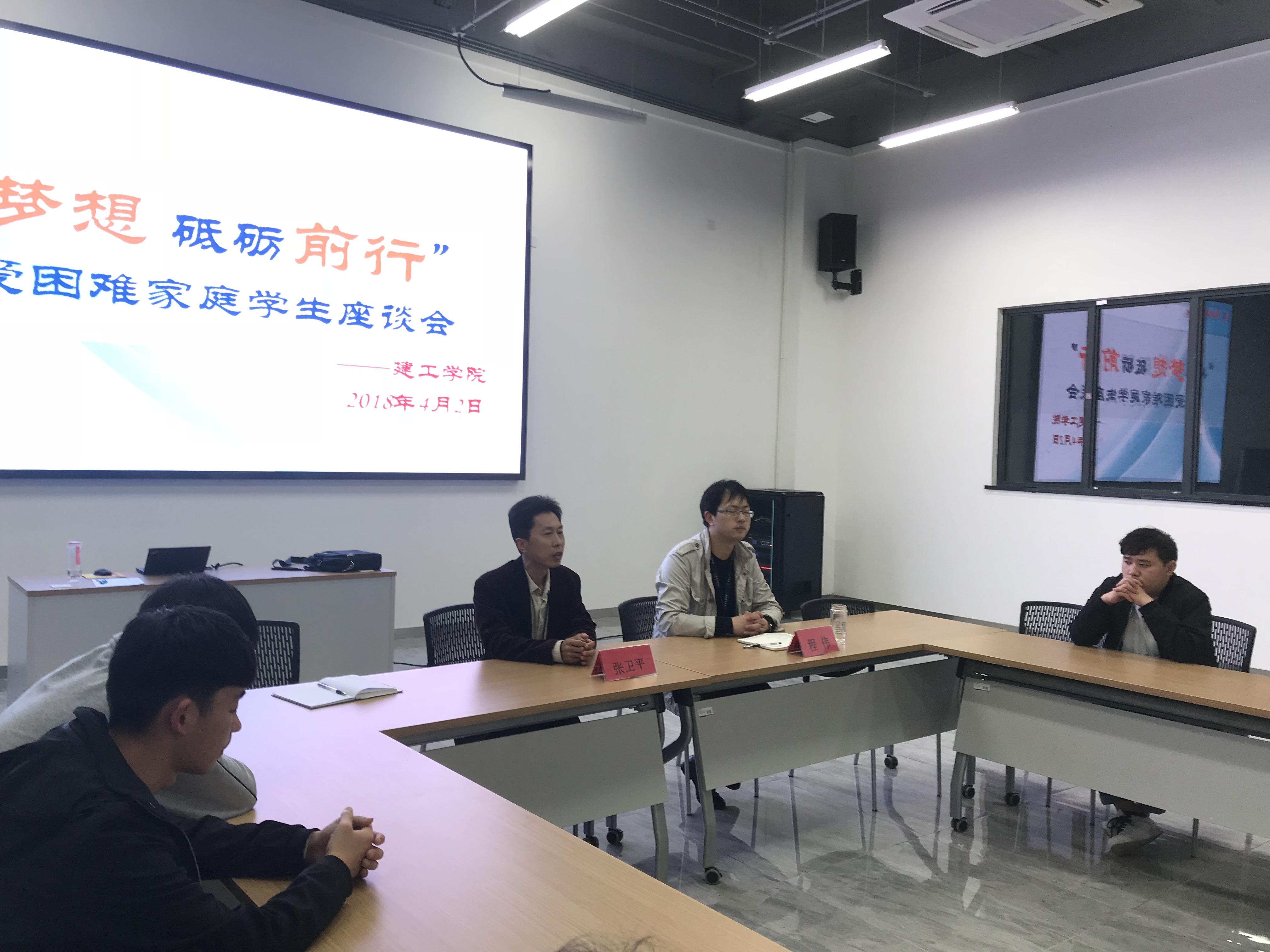 为了深入了解我院特困学生的学习、生活情况,充分听取学生对资助工作的意见和建议,提升学生资助育人的工作效果,4月2日下午5点,建工学院在现代技术馆举办了主题为“心怀梦想 砥砺前行” 关爱特困学生座谈会。建工学院党总支书记张卫平、副书记程伟、辅导员周丽娟及30名特困家庭学生参加座谈会。