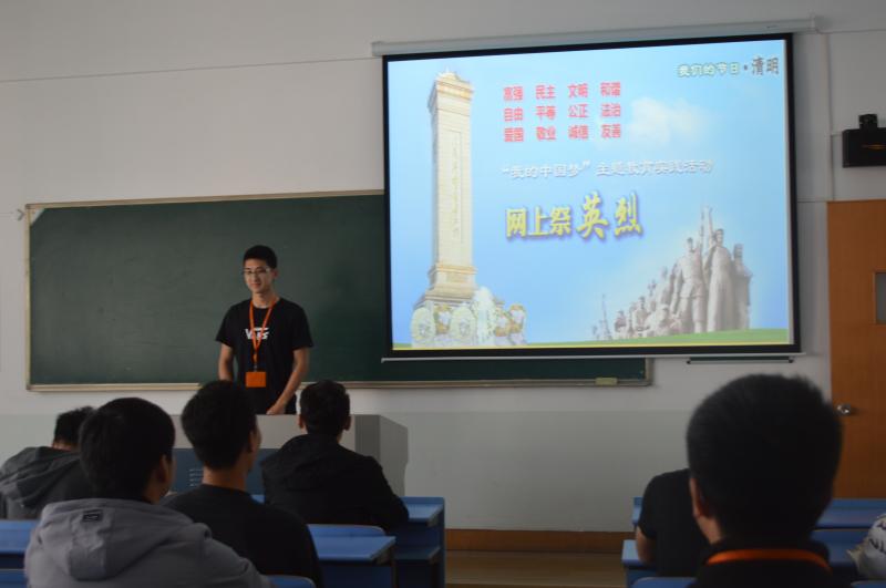 当日,各班级还积极利用课余时间开展网上祭英烈活动。先是通过革命影片的播放,使学生深刻的学习爱国主义教育及革命传统教育,同学们纷纷表示,以革命先烈为榜样,学习他们不畏艰难,勇于献身的革命精神。随后,由班长给大家讲述网上祭英烈的活动步骤,并号召大家积极参与。