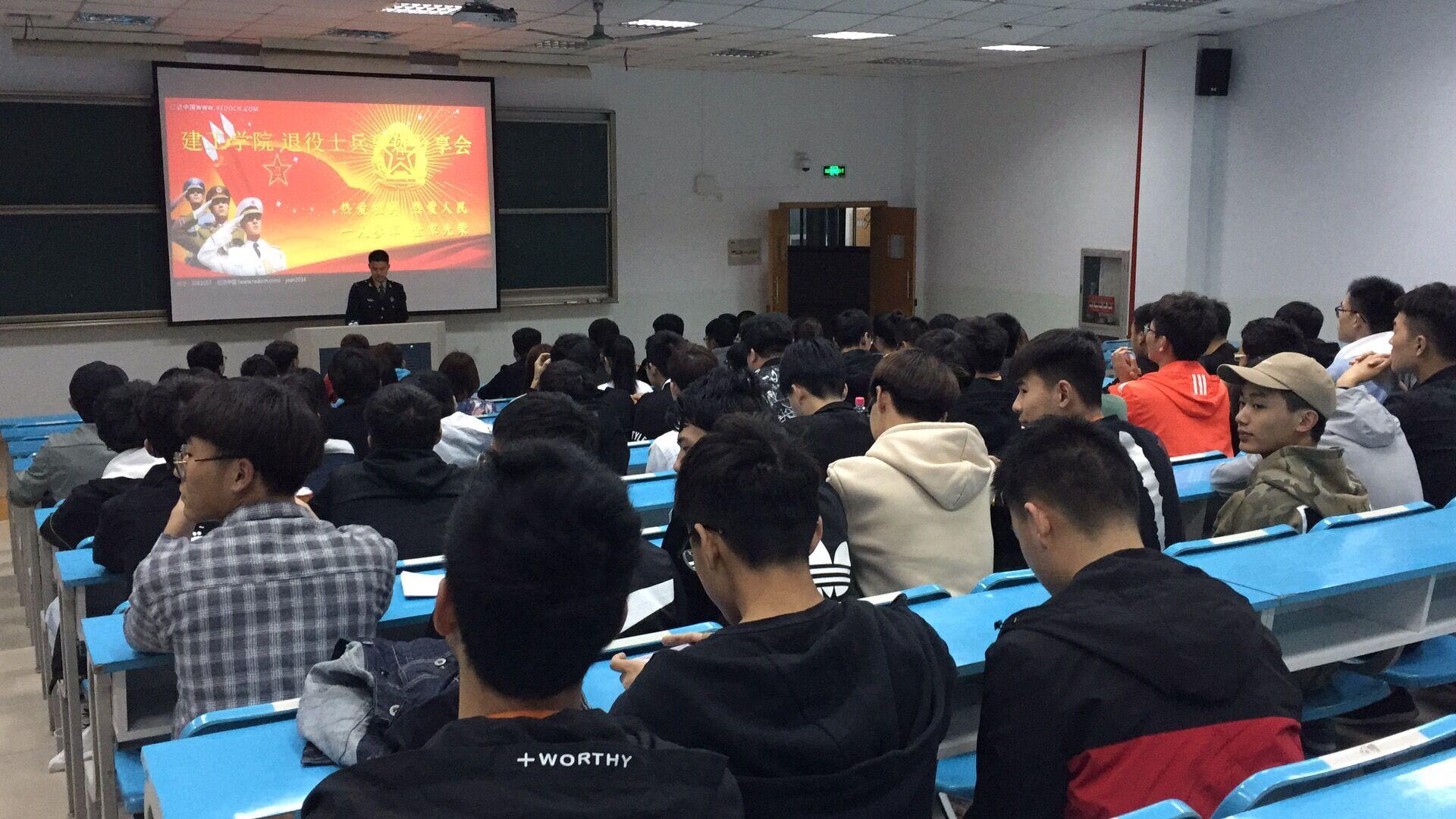 为服务2018级学生军训工作,并鼓励和支持学生应征入伍服义务兵役,建工学院优秀退役大学生士兵在新生军训前期,全力助力2018级学生军训工作。近日,建工学院举办了以“心怀家国,砥砺青春”为主题的退伍学生故事分享会暨助力2018学生军训,学工办潘雪老师、优秀退役大学生士兵及建工学院学生参与了本次活动。