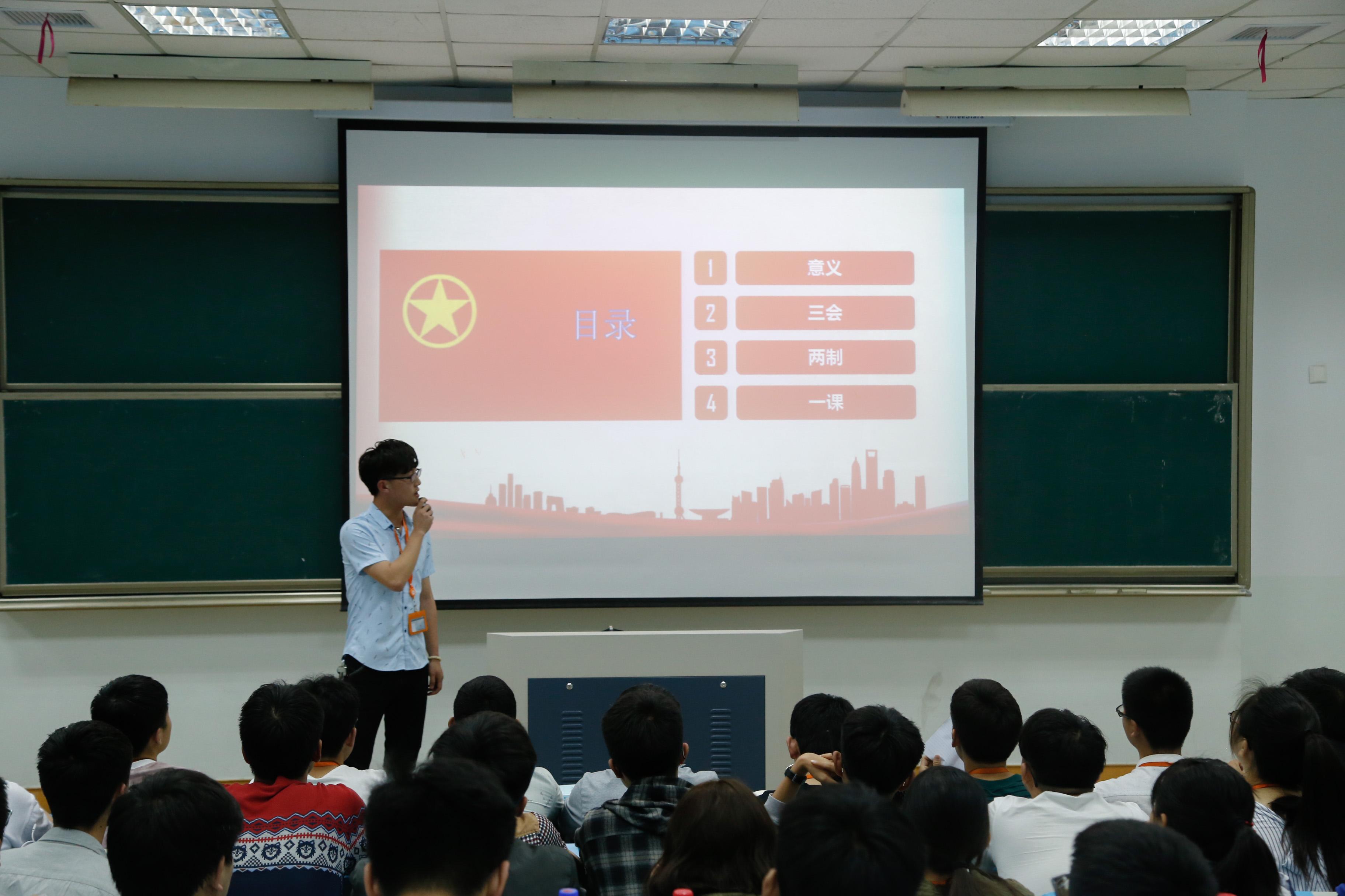 为健全学院共青团的组织生活,严格团员教育管理,提高团员干部的理论知识水平,4月22日晚,建工学院于阶六开展“三会两制一课”系列学习活动,建工学院学生会主席周益、副主席徐成左以及17级全体班委参加了本次学习。