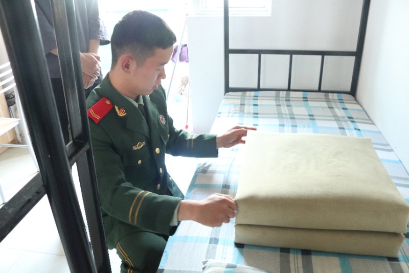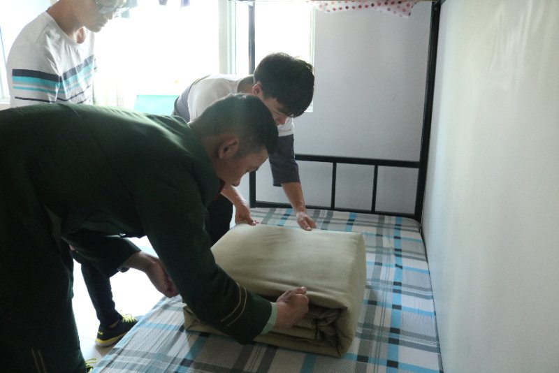 为了发挥退伍大学生的模范带头作用,来自造价1711马慧、造价1721陈中国在宿舍给同学们介绍了关于部队的内务整理的相关事项,分享了各自在部队生活中关于内务整理的经验,并做了关于如何正确的进行内务整理的现场示范,且让同学们积极的参与其中。