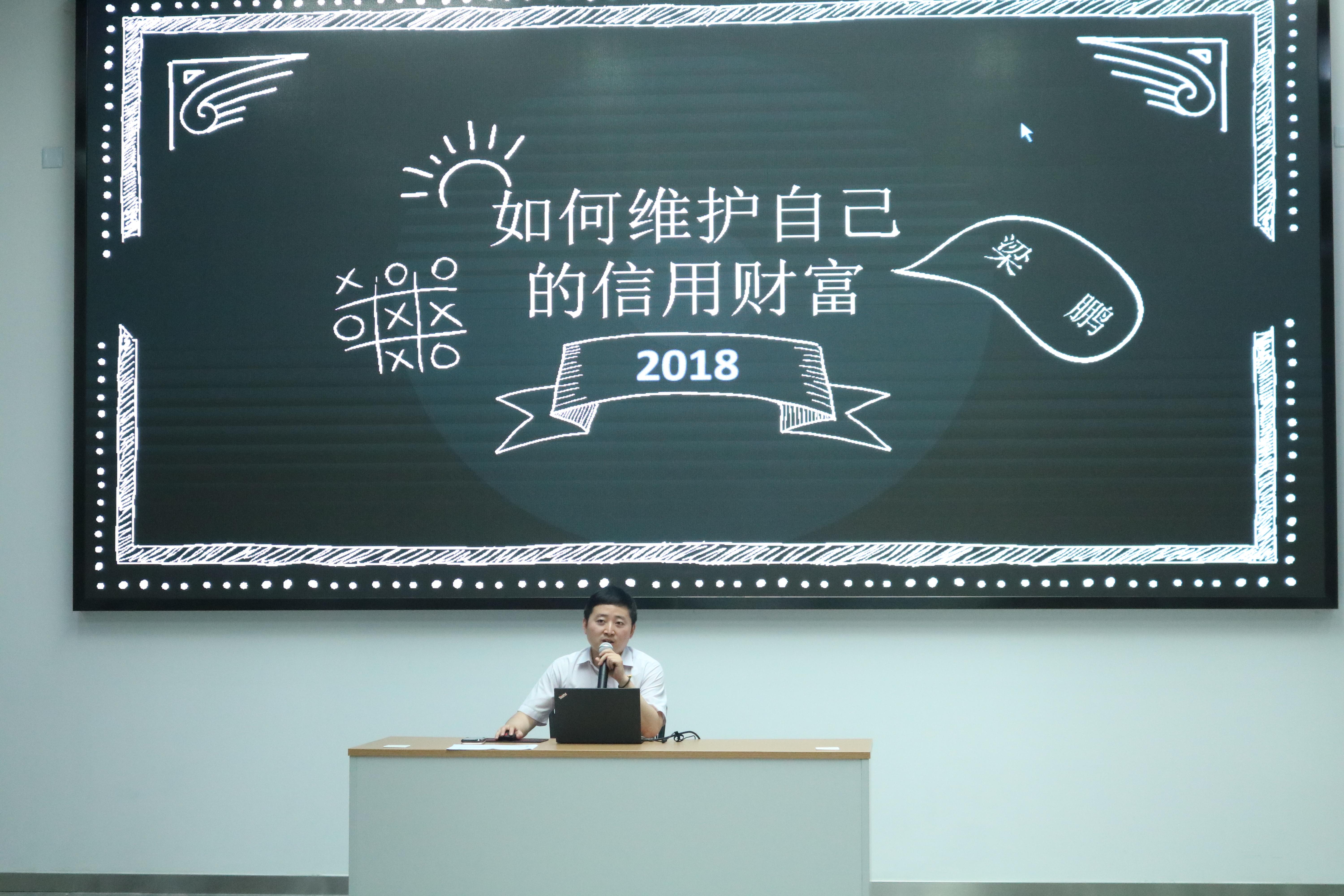 活动第一阶段,中国人民银行常州市中心支行征信管理科梁鹏老师为同学们带来了一场精彩的讲座。首先梁鹏老师通过带领学生观看征信宣传视频的方式,帮助同学们了解到信用名片在生活中的重要性。接着,梁老师以“如何维护自己的信用财富”为主题,从什么是征信、征信的发展、身边的征信三个方面,为同学们介绍了国家征信体系的相关信息。最后,梁老师为大家列举了九类不准确信用传言,并播放各类案例视频给予同学们警示。