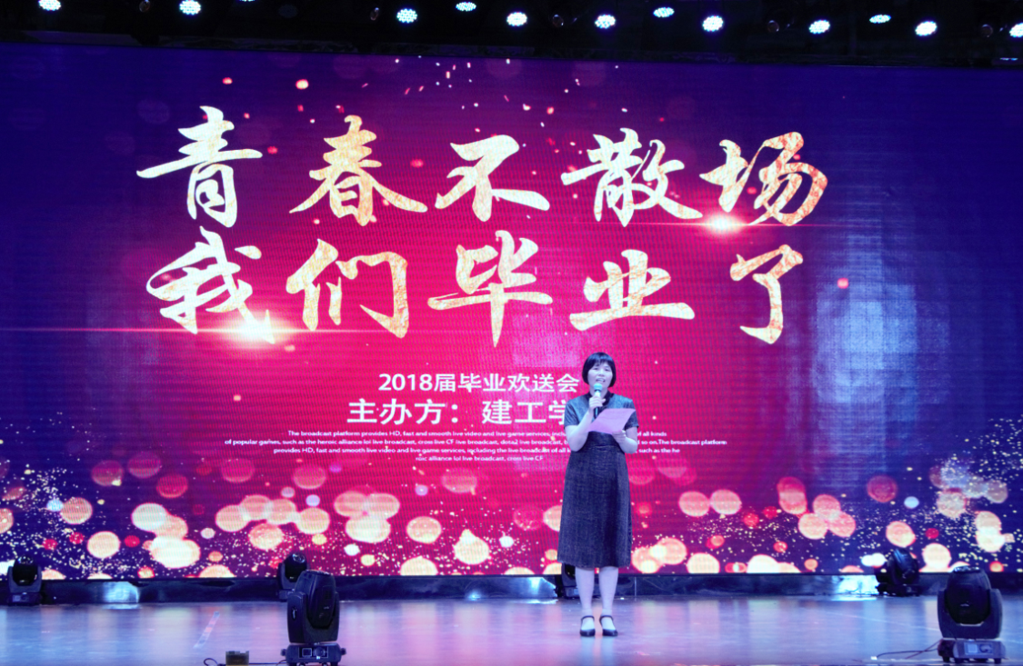 6月8日下午3点半,本次毕业欢送会在毕业生视频的循环播放中拉开帷幕。熟悉的校园、熟悉的场景和熟悉的师生,让同学们再一次回顾了自己大学三年的学习和生活,回忆着属于他们的故事。晚会在舞蹈表演《梦想起航》的热烈开场中正式开始。首先,徐永红书记代表全体老师上台致辞,徐书记回首过去,展望未来,表达了老师们对毕业同学的关爱不舍和殷殷期许。接着,党总支副书记程伟,学工办潘雪老师、谢旭东老师给大家带来了一首精心准备的歌曲《工程成都》,表达了对毕业生的美好祝愿,希望毕业生在今后人生路途中,在任何困难面前,做到不抛弃不放弃;欢送会上,教师代表李灵老师通过热情的发言,希望同学们在未来的工作和生活中不忘学习,努力提高自己,争做一个有文化的建工人。然后,全体毕业生班主任致辞,他们说道:今日人们因为母校而高看你们,明天人们因为你们而高看你们的母校。希望你们在工作中不断取得好的成绩。你们工作中做出了成绩,不要忘记告诉母校一声让老师们分享你们的成就。