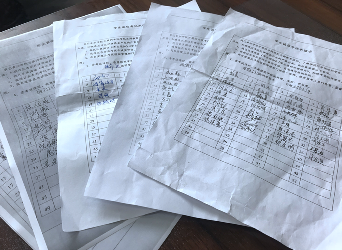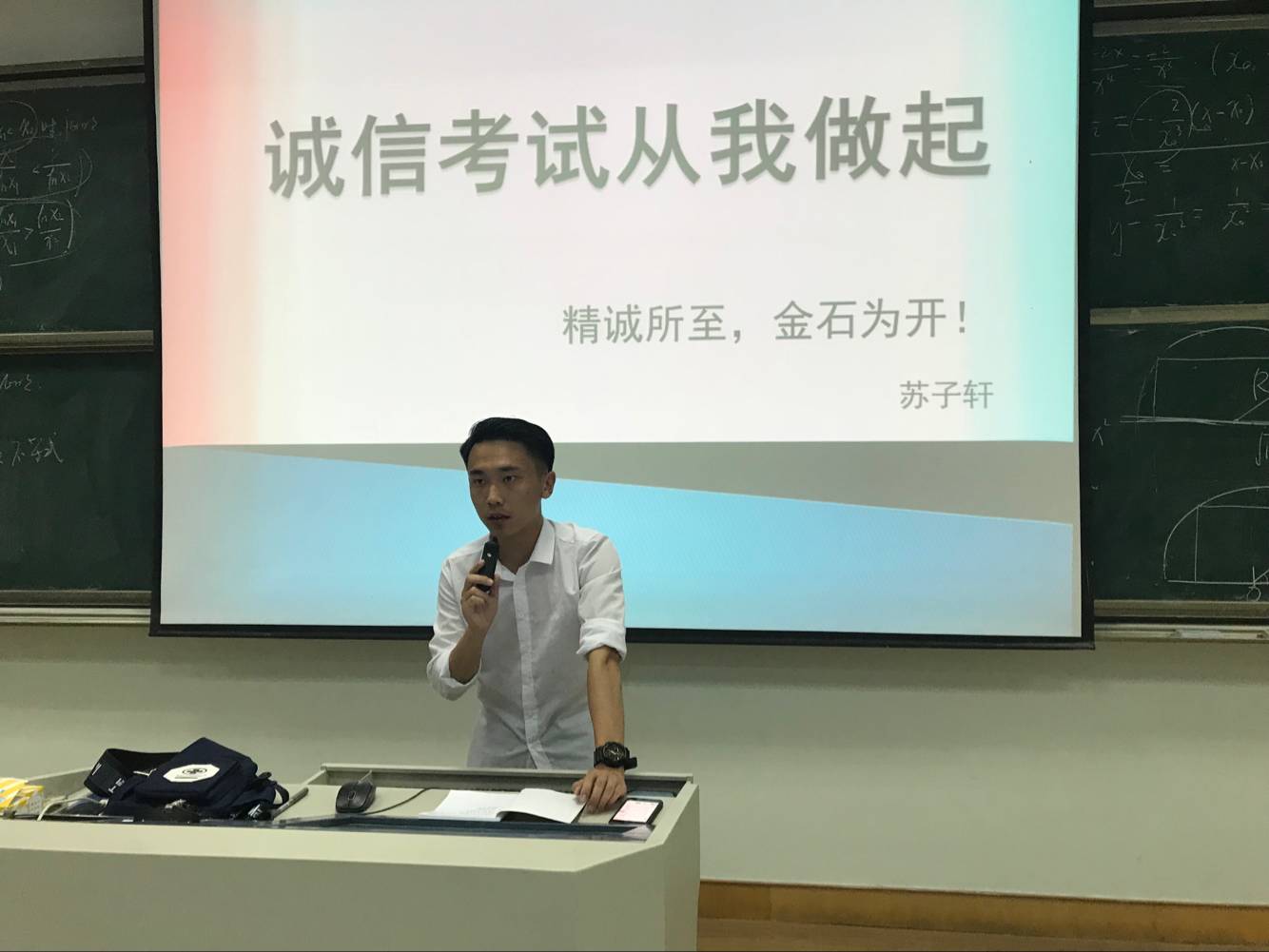 6月11日晚上7点,建工学院组织17级参加英语B级考试的学生在阶梯教室一集中观看了刑法修正案(九)警示教育宣传片,视频通过讲述往年考试作弊的典型案例等实例给同学们以警示。接着,各班级代表纷纷表达了观影感受,认识到“诚信光荣,舞弊可耻”,表达了自己诚信考试的坚定决心。最后,现场全体学生共同宣誓:从今天做起,从我做起,诚实为人,踏实做事,坚持诚信立身,诚信立学,诚信立言,诚信立行。铿锵有力的誓言在教室的每个角落环绕,诚实守信的种子也已经深深地扎在了在场同学们的心里。各班级还开展了“将诚信进行到底”诚信考试主题班会,学习了《考场规则》和《考生守则》等相关的政策法规,签订了《考试诚信承诺书》。