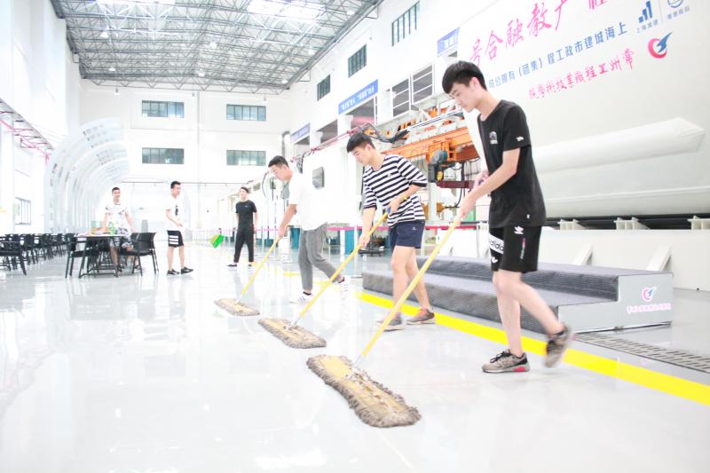 建工学院志愿服务队由16级入党积极分子组成,服务队于四月份成立,由建工1611班周益、监理1611班袁俊慧等入党积极分子发起,主动承担现代建筑技术馆的保洁工作,已连续服务近三个月。自现代建筑馆落成,盾构机馆承接了省内外多次参观,入党积极分义务队的成立极大地缓解了馆内保洁工作的压力。无论是馆内的常规保洁还是为接待参观接到的临时通知,入党积极分子们都能认真对待,利用空闲时间认真仔细的进行打扫,“劳动最光荣”的标语一直在同学们年轻的心中跳动着。参加的光荣感,塑造了同学们美好的心灵,同时也有利于培养大家去关心公共事业的热情和信心。在集体劳动中,入党积极分子们将盾构机基地打扫的干干净净,既使他们体会到了集体的力量,也亲身体验劳动的光荣感。
