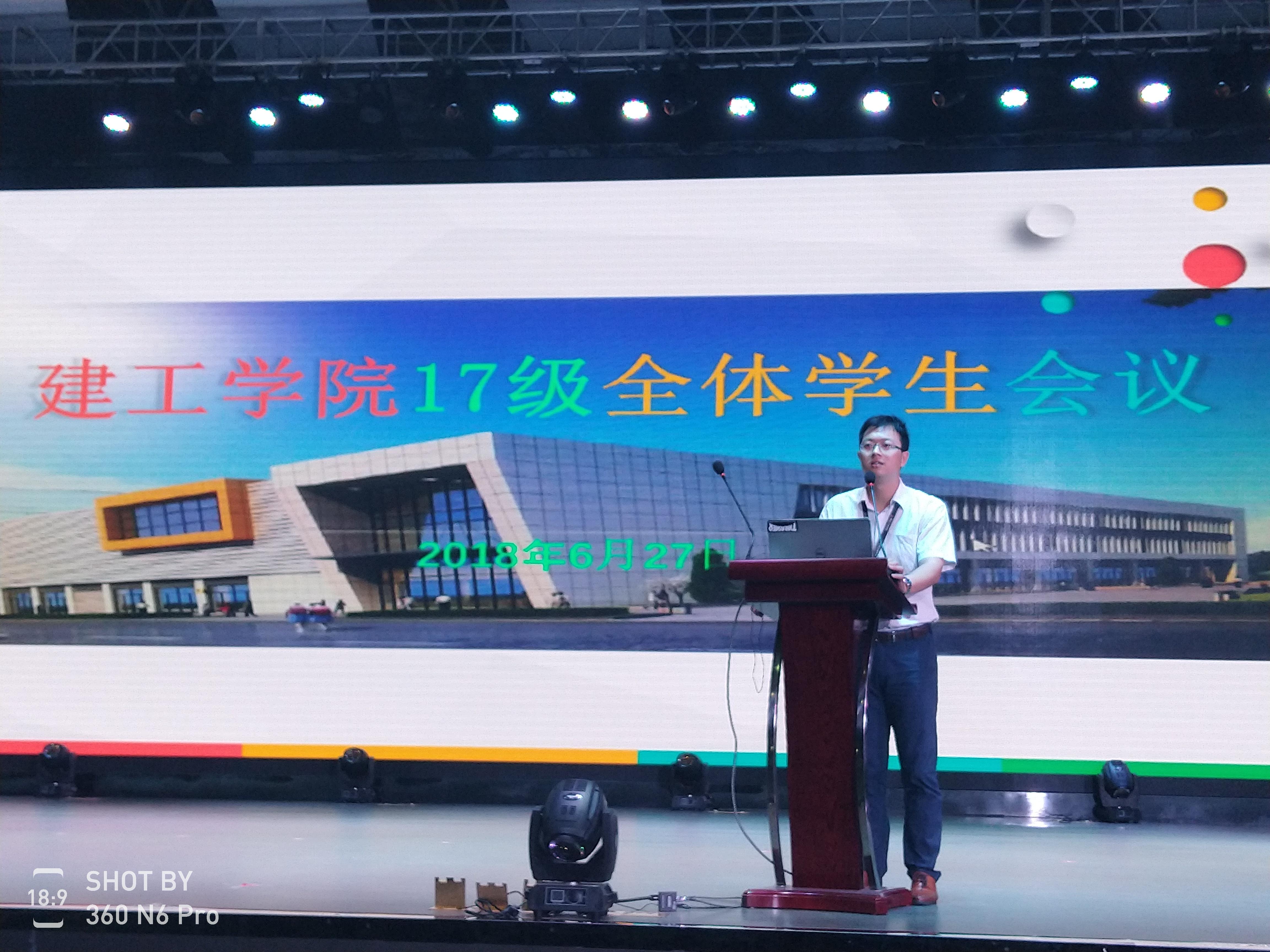 建工学院于6月27日下午4点在大学生活动中心多功能厅召开了2017级学生期末总结大会,建工学院党总支副书记程伟、院长助理张爱芳、学工办主任李月琴、17级年级辅导员黄玲、学工办辅导员周丽娟及2017级全体班主任和学生参加了此次会议,大会由建工学院党总支副书记程伟主持。