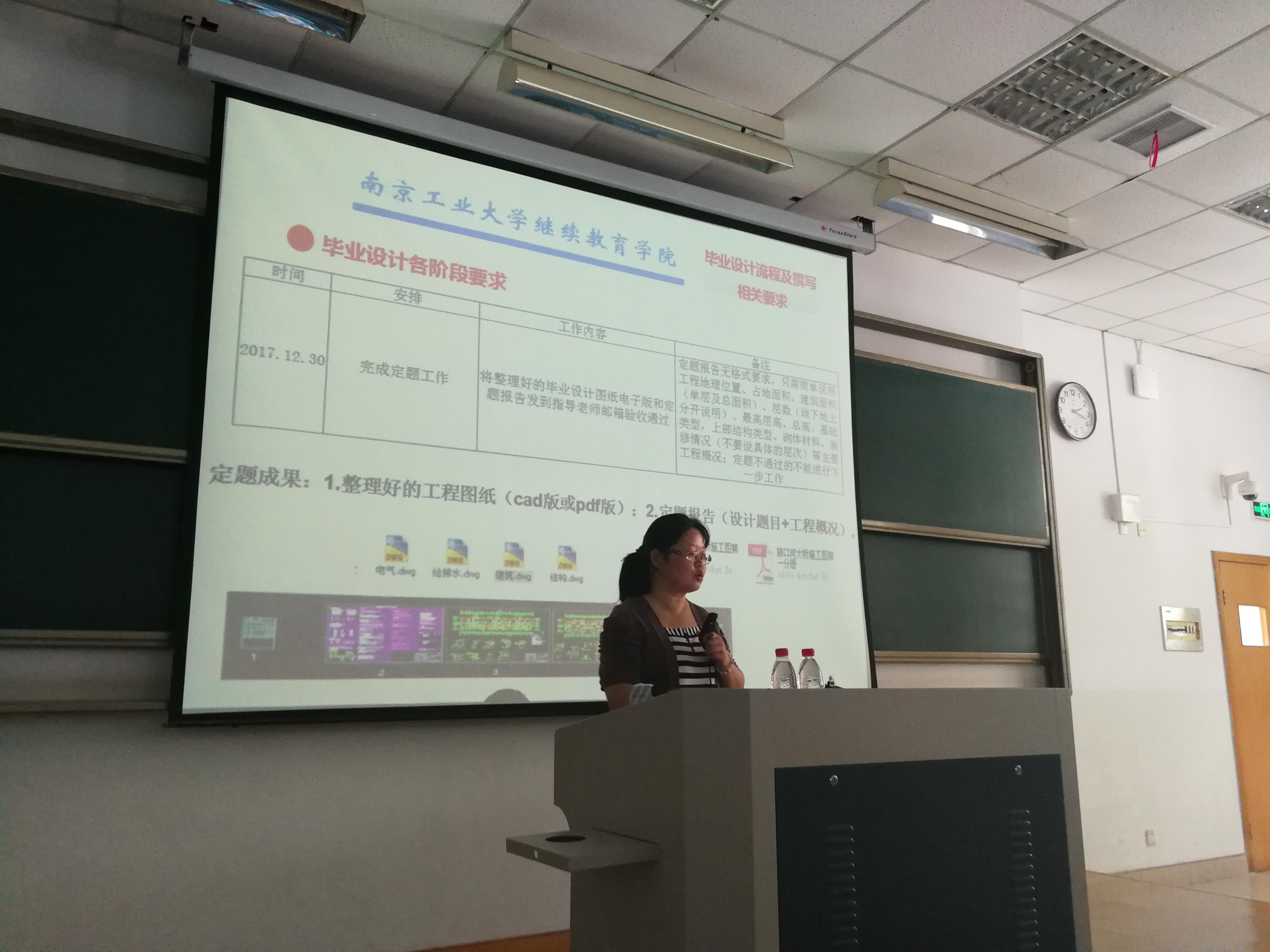 9月5日下午 ,学院邀请南京工业大学唐明怡老师来我校对2017级南京工业大学工程管理专接本班的学生进行了论文辅导讲座,2017级专接本论文指导老师也一起听取了讲座内容。