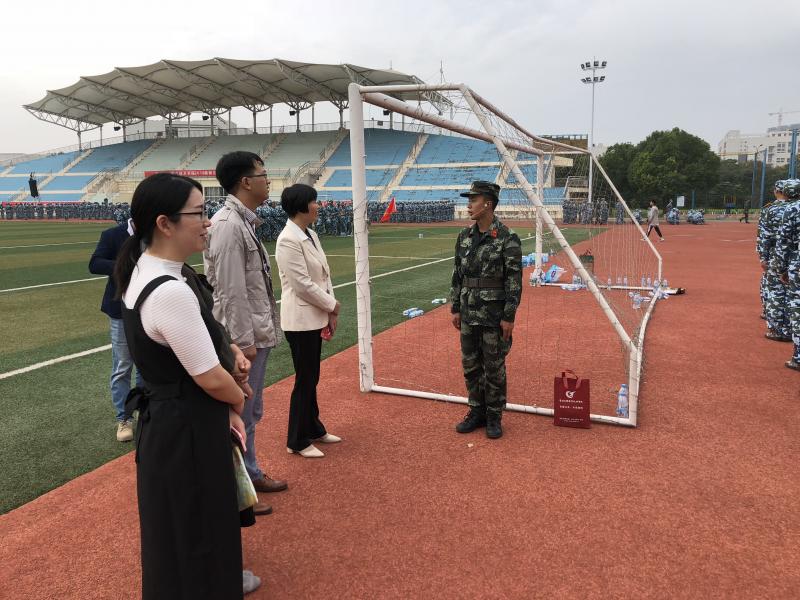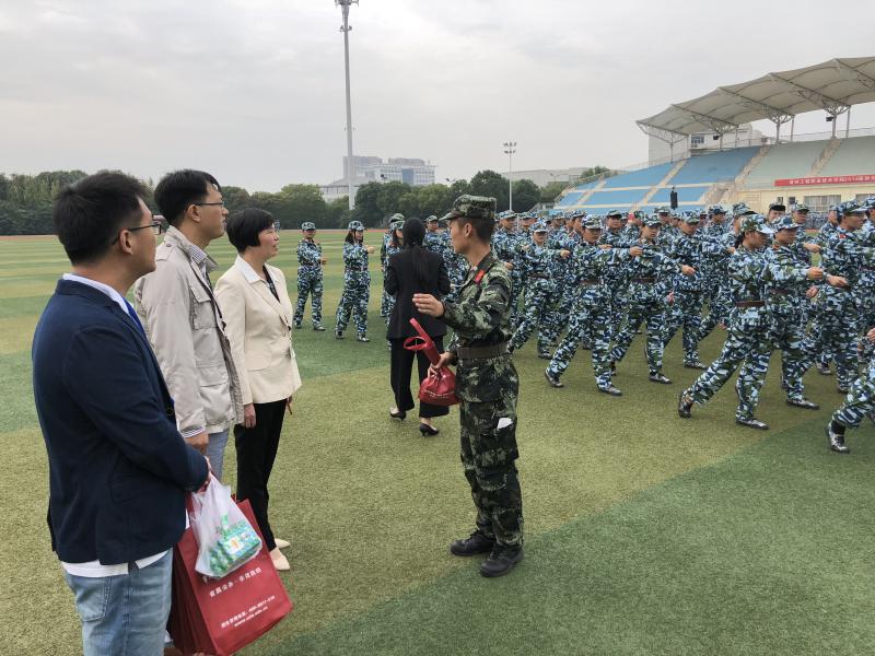 10月9日上午,建工学院书记徐永红、副书记程伟、学工办辅导员及部分班主任代表来到新生军训现场看望正在刻苦训练的新生。