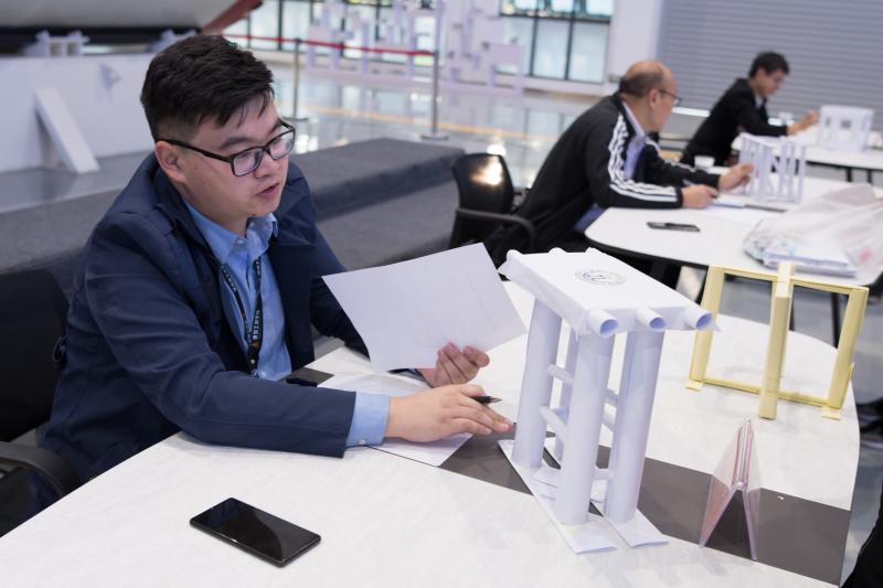 10月28日下午,建工学院第六届纸模承重大赛拉开序幕,共有52名同学报名参加本次比赛。建工学院魏建军副院长、BIM工作室徐桂明教授和姚文驰老师、外聘BIM教师李越等出席本次大赛并担任评委,对参赛作品模型的新颖度、结构的合理性以及个人的表达能力等方面进行打分。