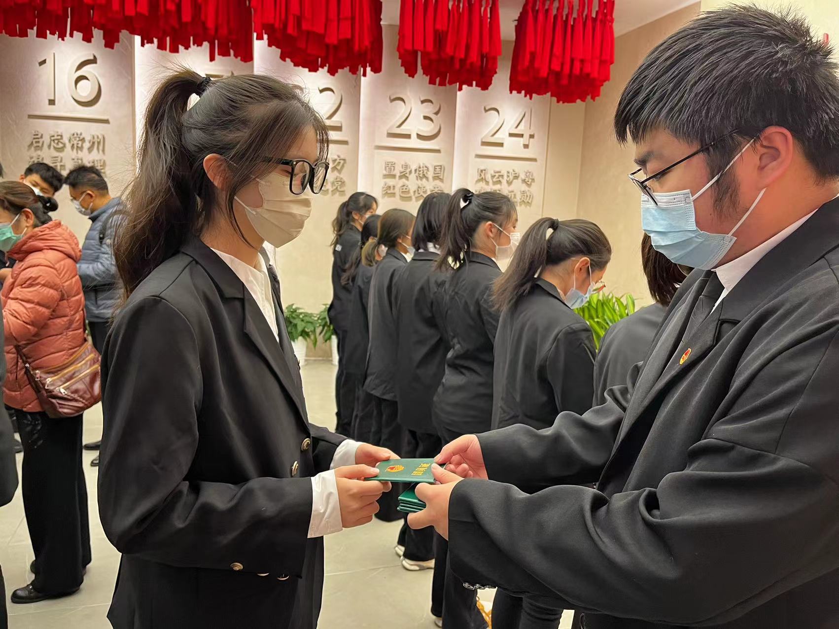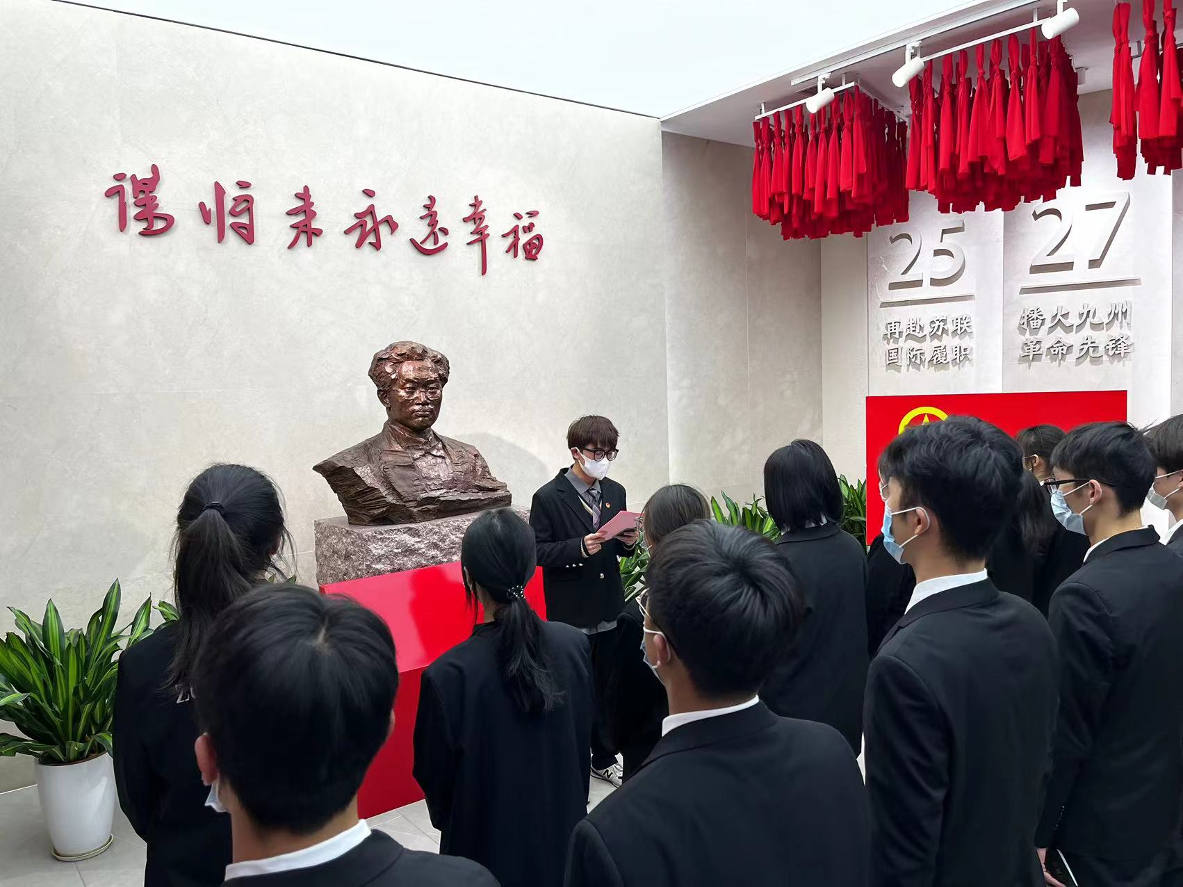 入团仪式在庄严的国歌声中拉开帷幕,全体与会人员高唱国歌,用洪亮的歌声表达了自己对祖国的热爱和对党的崇敬之情。会上周老师宣读了2022年新发展团员名单,老团员代表为新发展团员佩戴团徽。团员宣誓环节,新团员面对鲜艳团旗,举起右手庄严宣誓,青春誓言、高昂雄浑,表达了同学们对共青团组织的无限向往和为团组织增光添彩的豪迈激情!新团员潘进同学带领新团员学习了《团章》中有关团员的义务和权利的条款,并作为新团员代表发言,郑重承诺以团员的标准严格要求自己,勤奋学习,积极向上,锐意进取,不骄不躁,充分发挥团员的模范带头作用,肩负起时代赋予的重任,志存高远,奋力前行,为建设社会主义现代化国家,全面推进中华民族伟大复兴而团结奋斗。校团委副书记万劫向新发展团员表示祝贺,并向广大团员青年提出三点希望。一是强化政治自觉,坚定信念跟党走。二是加强党史团史学习,明确职责担使命。三是珍惜青春时光,脚踏实地谱篇章。希望全体新发展团员珍惜大学时光,学好专业本领,塑造高尚品格,提高综合素质,在参加公益活动和社会实践活动中提升为人民服务的本领,早日成长为团组织信任,党组织接纳的合格的社会主义建设者和接班人,成长为担当民族大任的时代新人。入团仪式在中国共产主义青年团团歌中接近尾声,同学们神情严肃,精神饱满,充分展现出当代青年的责任和担当。随后在纪念馆工作人员的带领下,新团员参观了张太雷纪念馆及其故居,通过一张张照片、一幅幅手迹、一段段影像资料,缅怀张太雷烈士参加革命、献身革命的光辉事迹。