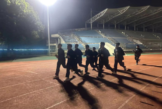 本次健跑运动共分为两个阶段:第一阶段全体学生环校两周,以图书馆为起点,沿环北路、环西路、励志路至环西路,完成4公里长跑;第二阶段操场耐力跑,绕操场跑步10圈,完成4.1公里。两阶段健跑里程共计8.1公里。健跑过程中,整个队伍步伐整齐,“建工男儿,勇往直前”“八一学社,挑战极限”口号响亮且富有力量。