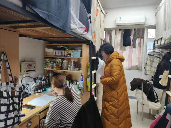 启动仪式结束后,校党委委员、副院长潘玉琴带领建工学院领导班子和辅导员们走进学生宿舍,查看文明宿舍创建情况,并与同学们亲切交谈,倾听同学们的心声,全面深入地了解同学们的思想状态、生活学习情况、以及各种诉求和建议,同时提醒同学们注意防寒保暖、防疫安全和宿舍用电安全,鼓励同学们努力学习、勤于锻炼,以积极向上的态度做好期末复习迎考。此次活动不仅为同学们提供了展示自我的平台,也增进了室友间的感情,增强了师生间的联系,让大家更好的“走进学生、了解学生、关爱学生”。