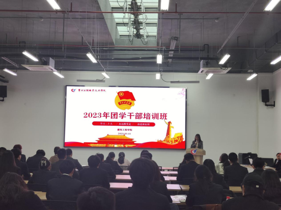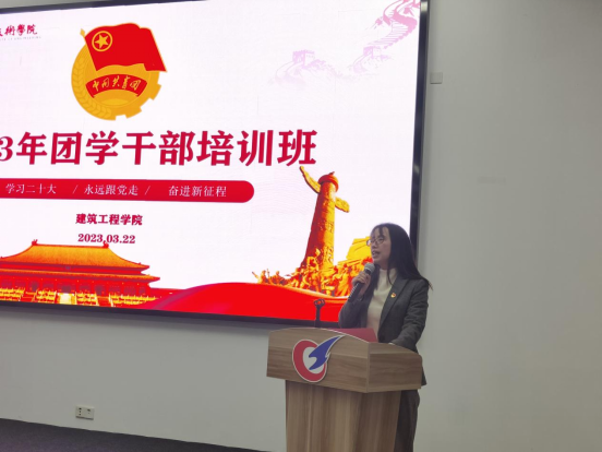 为进一步提升我院团学干部的政治理论素质和综合素质,拓宽团学干部的工作视野,加强对团学干部的指导教育,3月22日中午,建工学院在现代建筑技术馆313举行2023年春季团学干部培训班开班仪式暨党的二十大专题报告会。建工学院党总支副书记张爱芳、团委书记周丽娟、团委副书记李艺、辅导员杨军华以及2021、2022级团学干部参与此次开班仪式。大会由周丽娟主持。