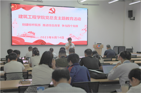 主题教育进行时|扛起新使命、谱写新篇章——建工学院举办“创建标杆院系 推进综合改革 争当四个先锋”主题党日活动
