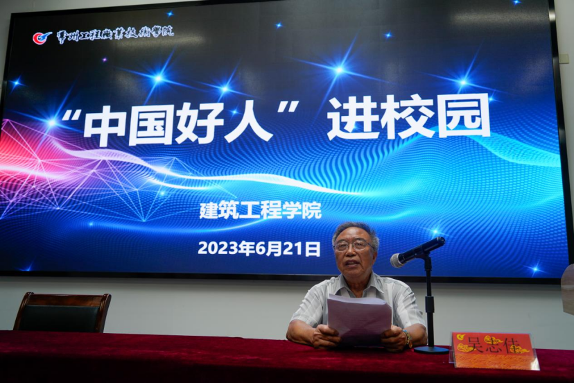 吴志佳以《践行志愿精神,争做时代楷模》为题,结合自己义务修伞、抗疫服务的经历,用真挚的感情、质朴的语言分享了自己一生不图名利、坚持十七年如一日做好事的感人事迹。作为一名有着40多年党龄的老党员,他初心如炬,使命如山,扎根社区,服务人民,脚踏实地做好事,名副其实做好人,把青春年华献给志愿服务事业,生动诠释了共产党人的初心使命和担当精神。在分享的过程中,他指出,做好事不难,难得的是一直做好事,当做好事变成了一种习惯,持之以恒地坚持下去,就会带动更多的人。他希望通过自己的事迹,能够激励青年一代强化使命担当、勇立时代潮头,在担当中历练,在尽责中成长,成为敢于奉献的开拓者,用青春和热血诠释青年的担当和使命。吴志佳的讲述,让志愿服务的种子在建工师生心中生根发芽。大家纷纷表示,要学习吴老先生不慕名利的廉洁品质、为民服务的奉献精神,树立远大志向,为推进强国建设、民族复兴作出应有贡献。