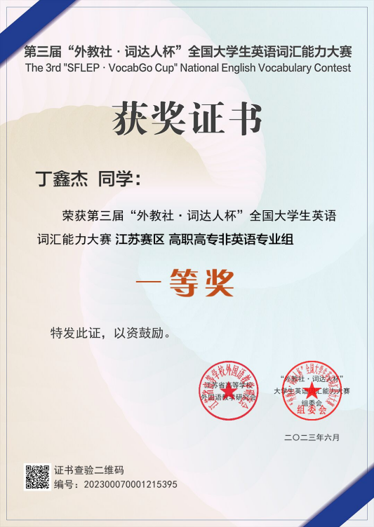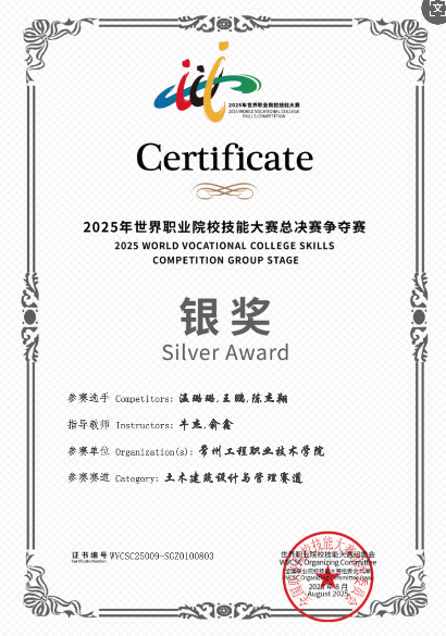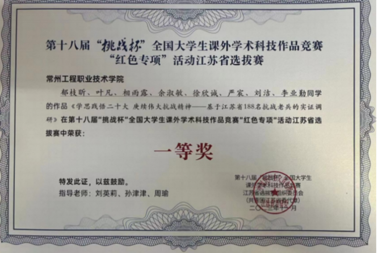 学生积极参加各级各类竞赛,近年来获省级以上奖项二十余项。获奖的项目有:2025年世界职业院校技能大赛银奖1项;2025年江苏省职业院校技能大赛一等奖1项、二等奖1项;2024年江苏省职业院校技能大赛一等奖1项、二等奖3项;2024江苏省职业院校创新创业大赛一等奖;2023江苏省职业院校创新创业大赛一等奖;2023江苏省职业院校技能大赛二等奖、2023第十八届挑战杯江苏省选拔赛一等奖、2023全省高校红十字会“博爱青春”暑期志愿服务活动银奖、2023江苏省英语词汇能力大赛一等奖等。