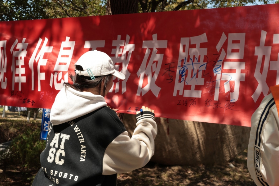 活动现场氛围热烈,同学们积极响应、主动参与,认真聆听志愿者的讲解,仔细阅读宣传材料,相互交流分享自身的睡眠习惯和助眠小技巧。在主题横幅前,同学们纷纷驻足,郑重签下自己的名字,以此承诺践行科学睡眠理念,主动关注自身心理健康,养成良好作息,以饱满的精神状态投入到学习和生活中,一笔一划承载着学子们对健康生活的向往与追求,成为现场一道亮丽的风景线。